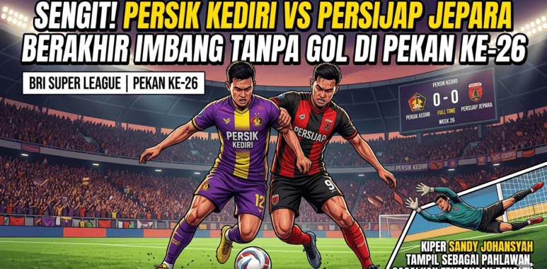 infobola.live – Laga lanjutan pekan ke-26 BRI Super League 2025/2026 yang mempertemukan Persik Kediri melawan Persijap Jepara di Stadion Brawijaya berakhir tanpa pemenang. Meskipun kedua tim tampil menyerang dan menciptakan sejumlah peluang emas, skor imbang 0-0 tetap bertahan hingga peluit panjang dibunyikan.